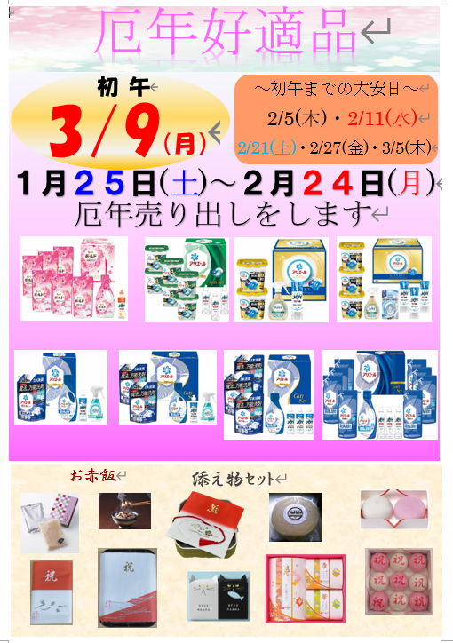 1月25日(土)より厄年のご案内